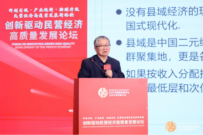 中国县域经济发展大会组委会执行主任陈剑发表主旨演讲《以新质生产力重塑县域产业及晋江县域经济样本观察》,深入剖析县域经济在民营经济发展中的重要地位。他指出,县域是破解城乡二元结构的关键载体,而“晋江经验”通过40余年发展实现人均GDP从154元到19万元的跨越,为县域经济高质量发展提供了宝贵范本。