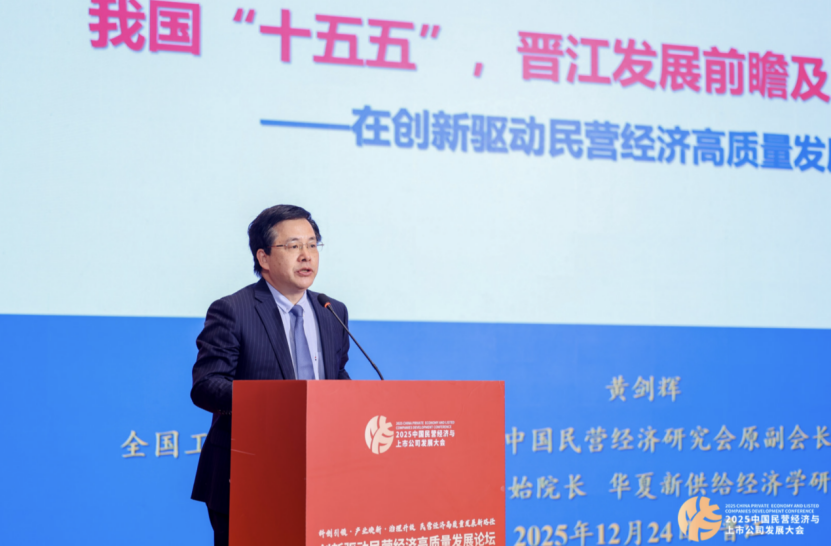 新华网泉州12月25日电(记者丁峰) 2025中国民营经济与上市公司发展大会分论坛“创新驱动民营经济高质量发展论坛”于12月24日在福建晋江举行。此次活动以“科创引领・产业焕新・治理升级民营经济高质量发展新路径”为核心导向,吸引了来自政产学研用等各界人士齐聚一堂,围绕“十五五”民企发展策略、新质生产力重塑县域产业、AI赋能民营经济创新等关键议题,通过政策解读、主题演讲、成果发布与圆桌对话等多元形式深入研讨,为民营经济破解发展难题、激活创新动能、构建现代化产业体系凝聚共识,奋力书写民营经济高质量发展的新篇章。