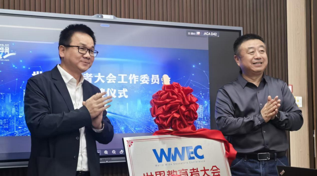 新华网编委、新华网上市公司研究院常务副院长邱小敏与全国工商联民办教育出资者商会副会长、世界教育者大会发起人宋辉共同参与世界教育者大会工作委员揭牌仪式。新华网发